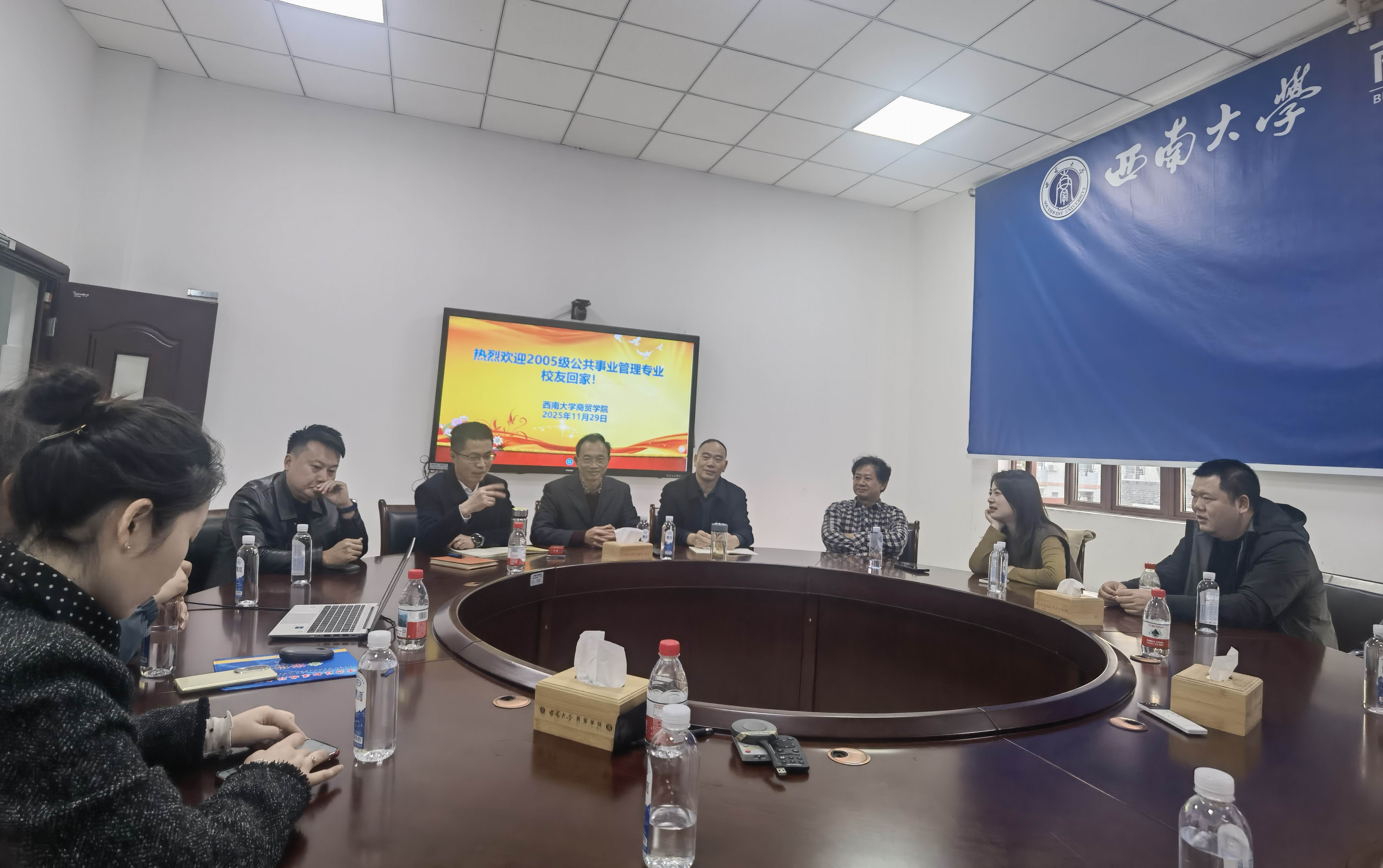 岁月如歌,情谊如酒。2025年11月29日,西南大学商贸学院2005级公共事业管理专业部分校友重返母校,开展了一场别开生面的返校聚会活动。相聚二十载,校友们带着对青春的追忆与对母校的眷恋重聚校园,共叙同窗情谊,共话发展蓝图。