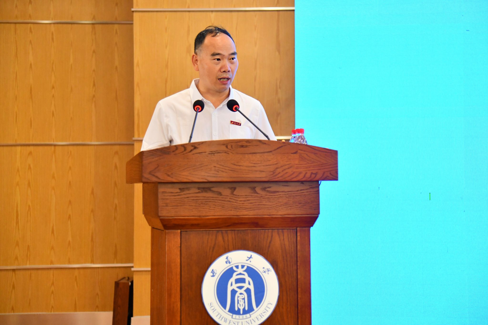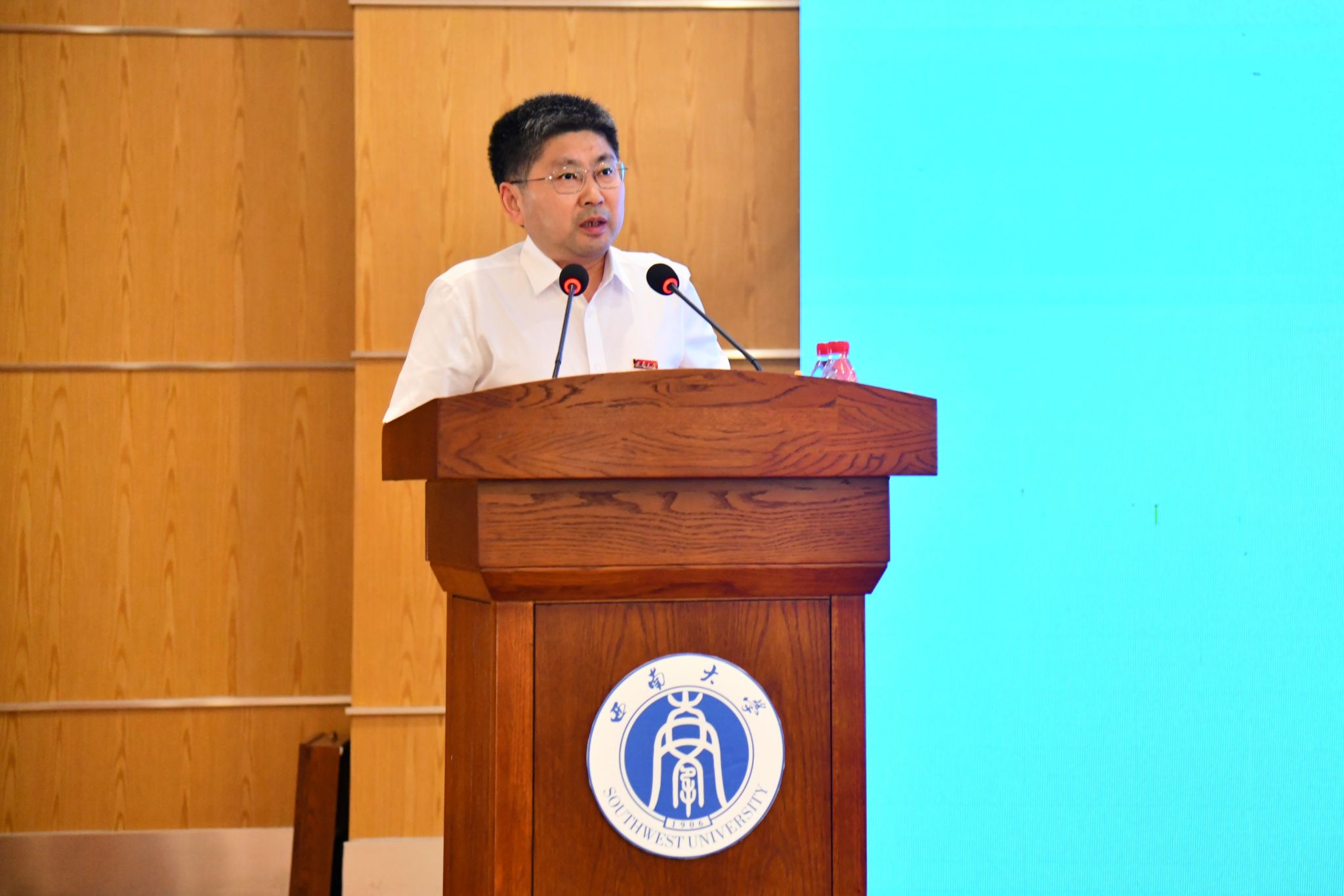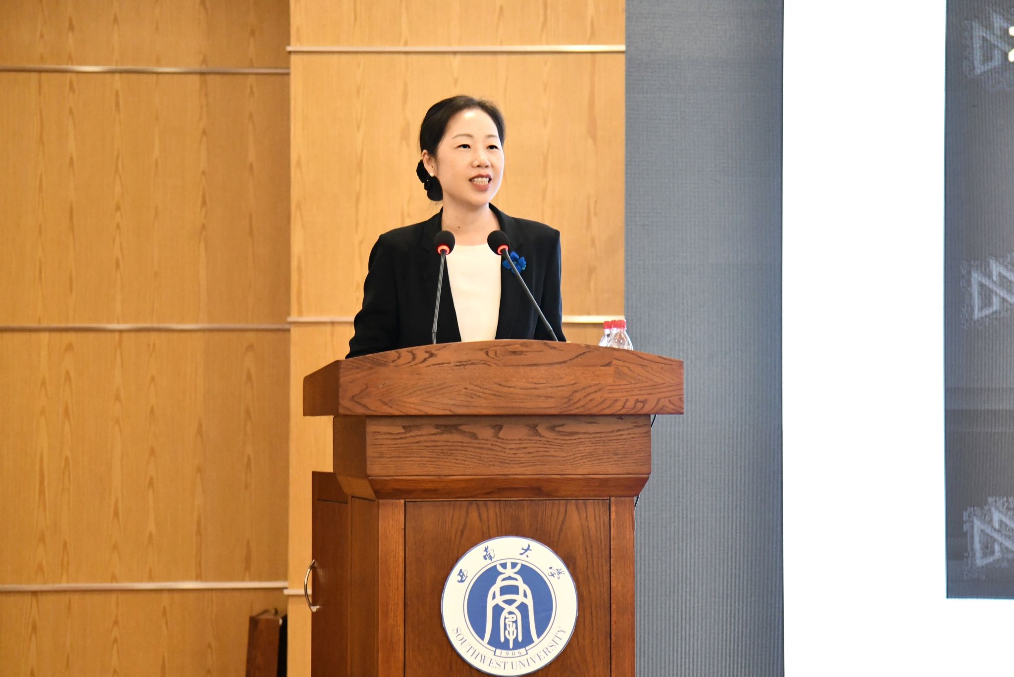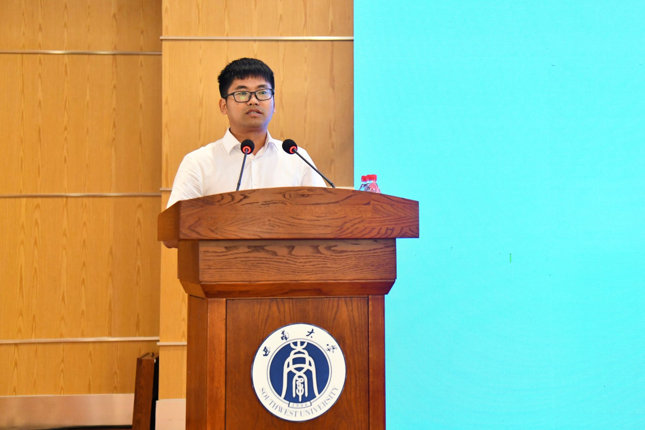 新生代表许欣妍代表新生表态,将珍惜学习机会,尽快适应大学生活,以优异成绩回报师长期望,在西南大学这片热土上用汗水浇灌青春、以实干笃定前行。